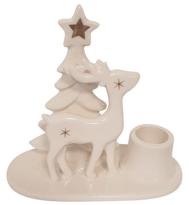 Svícen s jelenem porcelánový 12 x 11 x 6 cm, na svíčku 2,2 cm