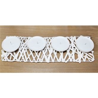 Vyrobený z kvalitního proutí a plechu, svícen je nejen krásný, ale i praktický. Jeho rozměry 40 x 13,5 cm a výška 5 cm jej činí ideálním doplňkem na stůl, poličku nebo parapet. Díky neutrální bílé barvě se snadno hodí do různých stylů dekorace - od moderního po rustikální.