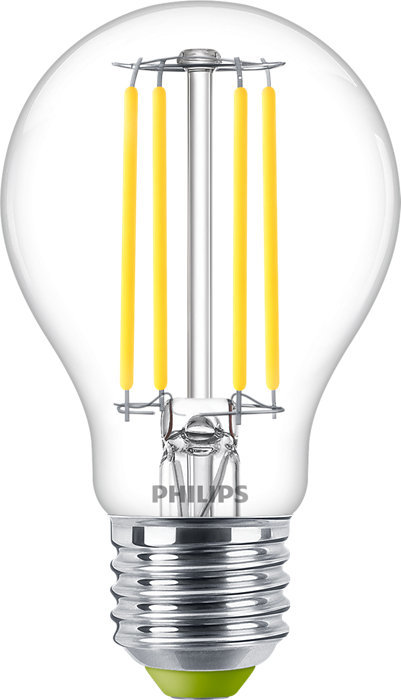použití pro svítidla s paticí E27 Philips MASTER LEDBulb UltraEfficient s čirou skleněnou baňkou CL v tradičním tvaru hruška A60 o průměru 60 mm s výškou 105 mm má viditelná filament vlákna příkon 2,3 W ekvivalentní náhrada 40 W žárovku světelný tok 485 lm s nejvyšší účinností 210 lm/W neutrální...