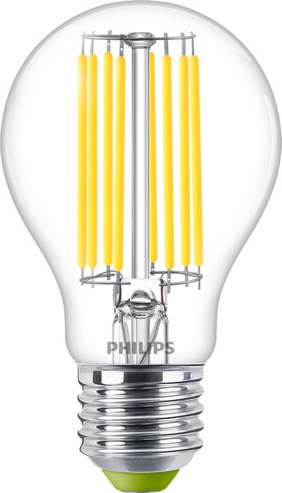 použití pro svítidla s paticí E27 Philips MASTER LEDBulb UltraEfficient s čirou skleněnou baňkou CL v tradičním tvaru hruška A60 o průměru 60 mm s výškou 105 mm má viditelná filament vlákna příkon 4 W ekvivalentní náhrada 60 W žárovku světelný tok 840 lm s nejvyšší účinností 210 lm/W neutrální...