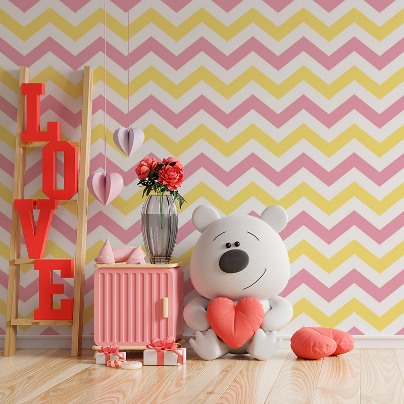 Tapeta Růžové a žluté klikyháky: 125x75 cm