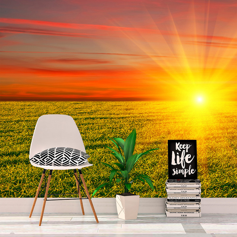 Tapeta Západ slunce nad loukou: 336x220 cm