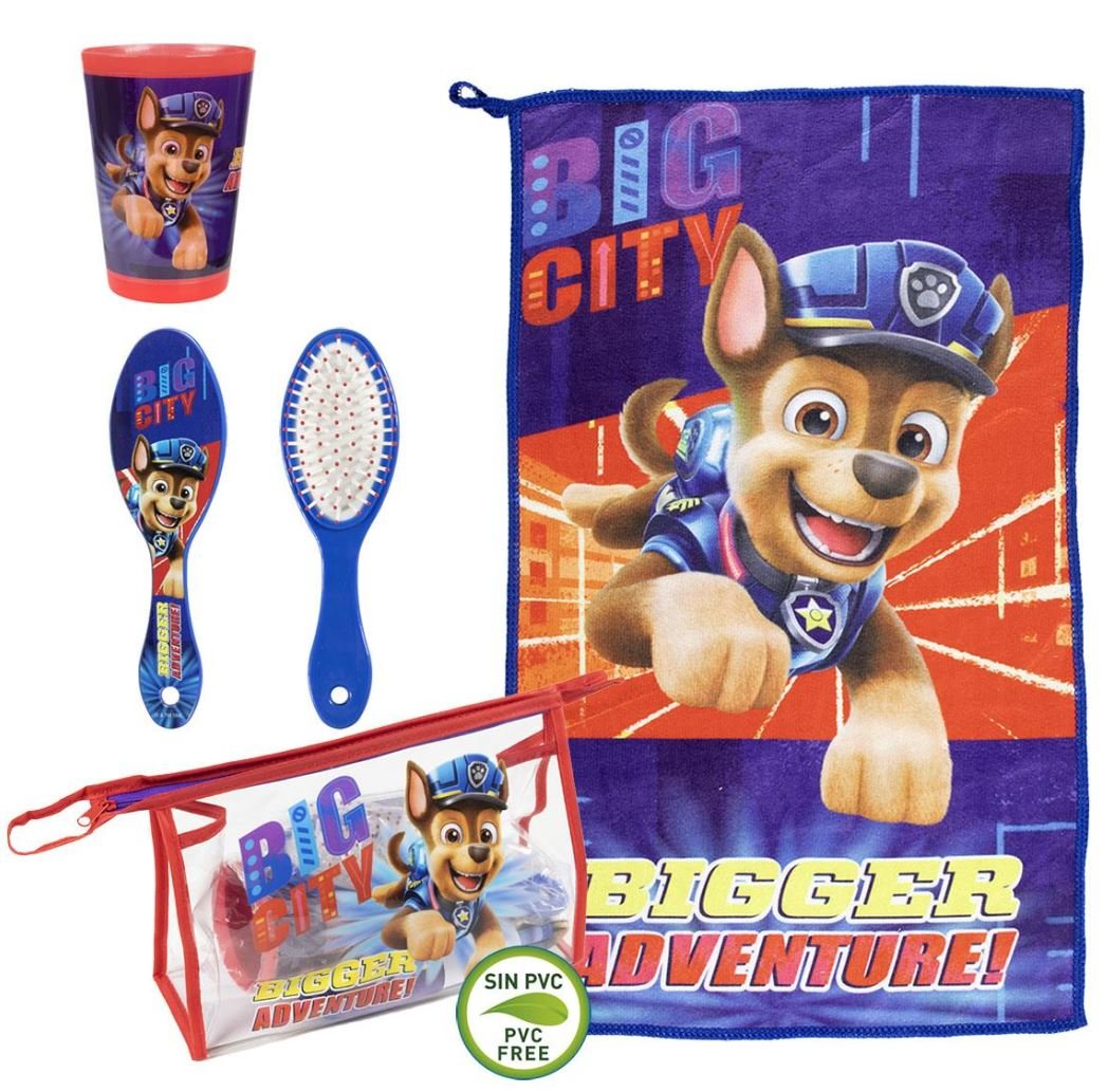 Oficiální kosmetická taška (set) z katalogu produktů s licencí Paw Patrol (Tlapková patrola). Zboží je legálně licencováno a prodáváno se souhlasem vlastníků licenčních práv.Kosmetický set skládající se z průhledné tašky, hřebenu, plastového kelímku zabalený v tašce s motivem Paw Patrol Big City....