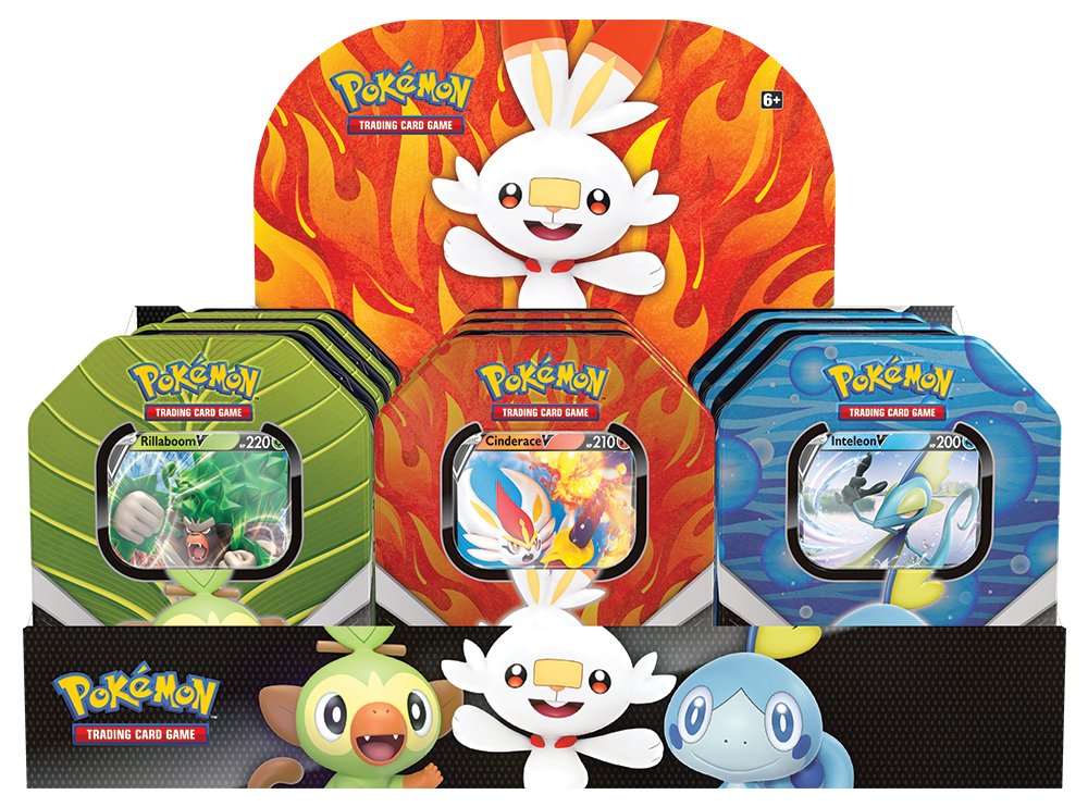 Krásná plechová krabička s boostery a foilovou kartou!1 ze 3 foilových karet - Rillaboom V, Cinderace V nebo Inteleon V4x booster (každý obsahuje 10 karet náhodných karet)1x karta s kódem Pokémon TCG online číst celé