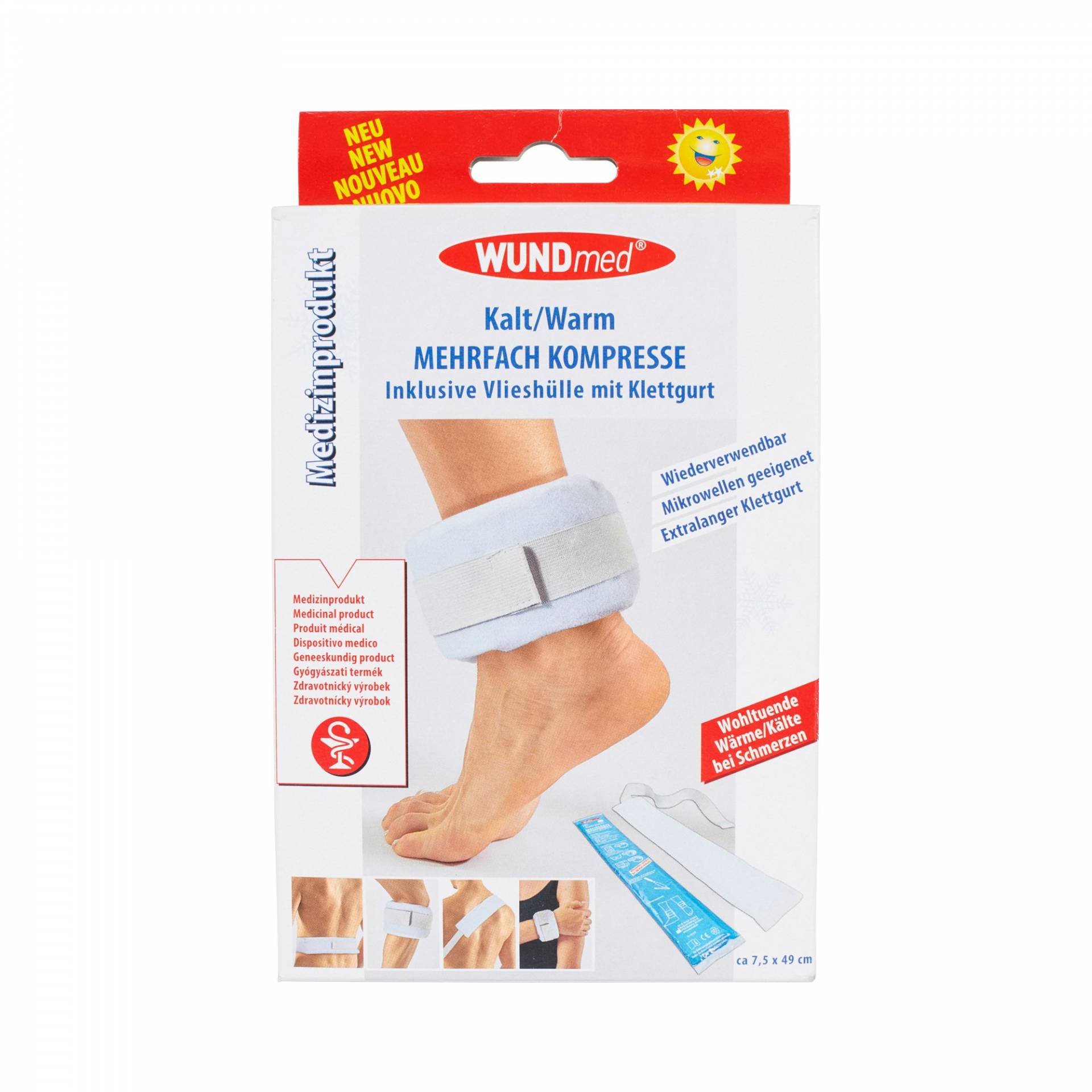 Gelový sáček s fleecovou bandáží o rozměru 7,5 x 49 cm lze používat opakovaně jako teplý nebo studený obklad na různé části těla. Jednoduše ho nahřejete v horké vodě či mikrovlnné troubě, nebo naopak uložíte do mrazáku pro rychlé zchlazení. Díky přiložení na postižené místo pomáhá rychle ulevit od bolestí svalů, měkkých tkání, pohmožděnin, bolestech břicha či při nevolnostech a mdlobách.