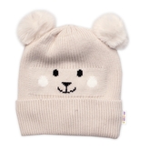 Dvouvrstvá zimní čepice a chlupáčkové bambulky, Baby Nellys - béžová, vel. 46-50 cm; 80-92 (12-24m)