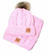 BABY NELLYS Zimní pletená čepice s bambulí + komínek, světle růžová - vel. 104/116; 104-116 (4-6r)