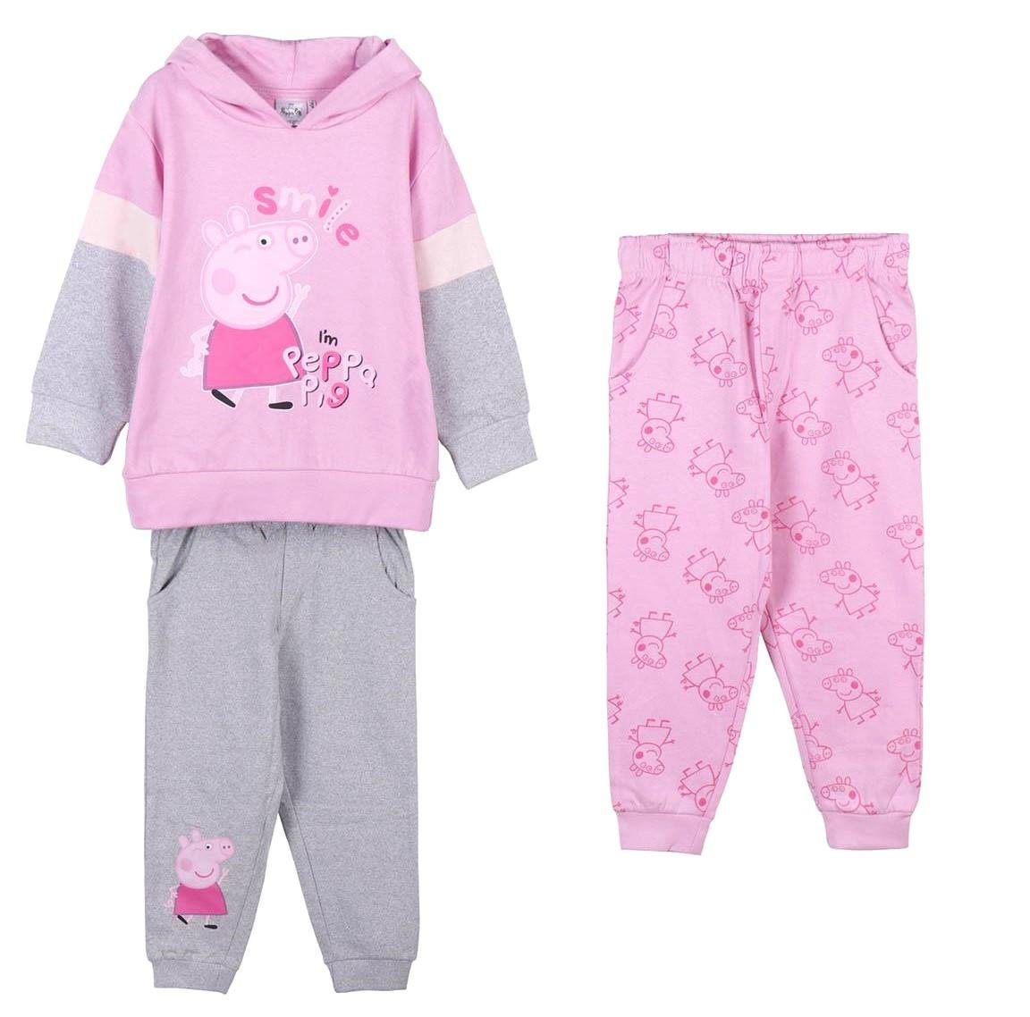 3 - dílná souprava, 2 tepláky - jedny šedé a jedny růžové a 1 mikina.