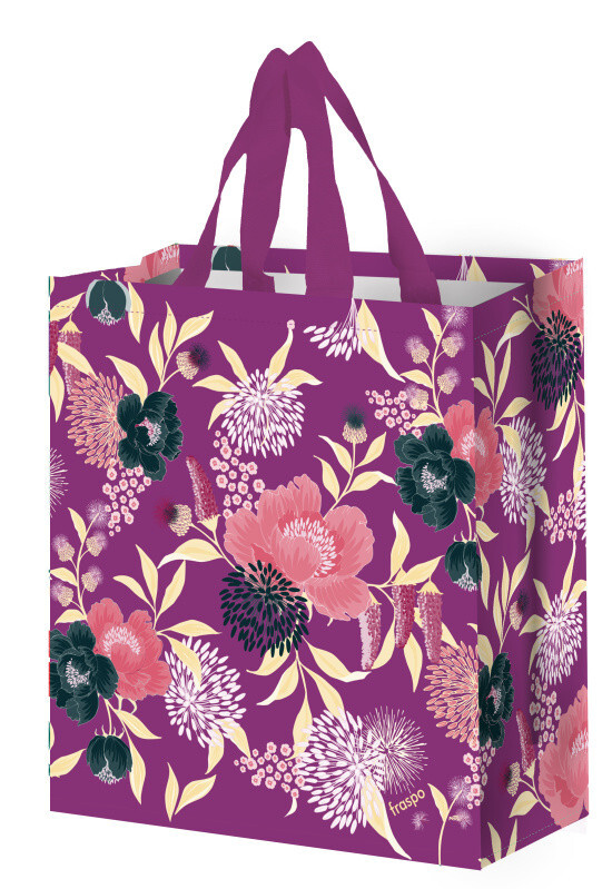 Taška lamino 14l květy fialová je ideálním doplňkem pro všechny, kteří chtějí nakupovat s ohledem na životní prostředí, aniž by slevili z kvality a designu. Skvělá volba pro nákupy, volný čas i běžné nošení díky svému odolnému materiálu a atraktivnímu fialovému květinovému motivu.