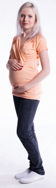 Be MaaMaa Těhotenské a kojící triko s kapucí, kr. rukáv - meruňka; L/XL
