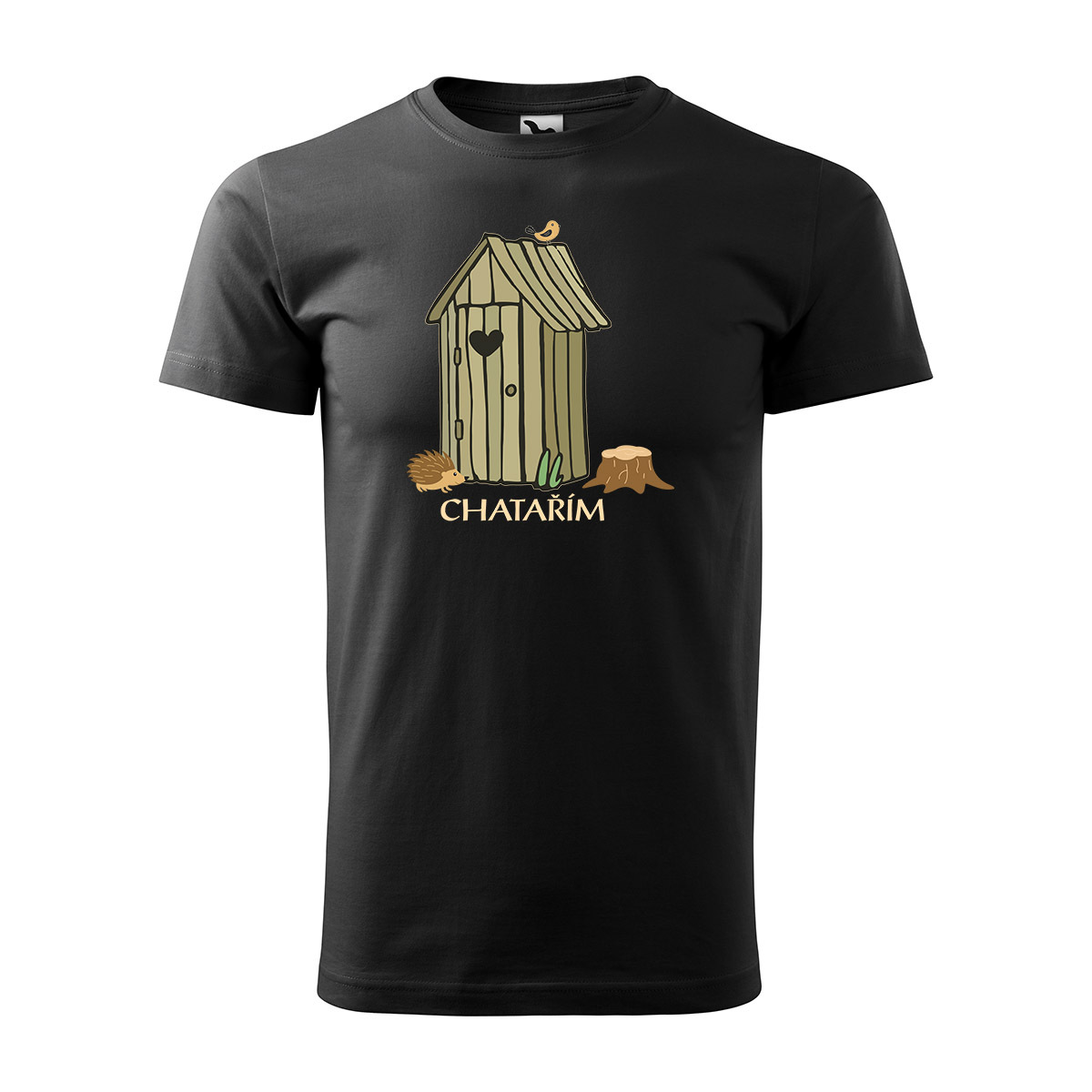 Tričko s potiskem Chatařím - kadibudka: černé S