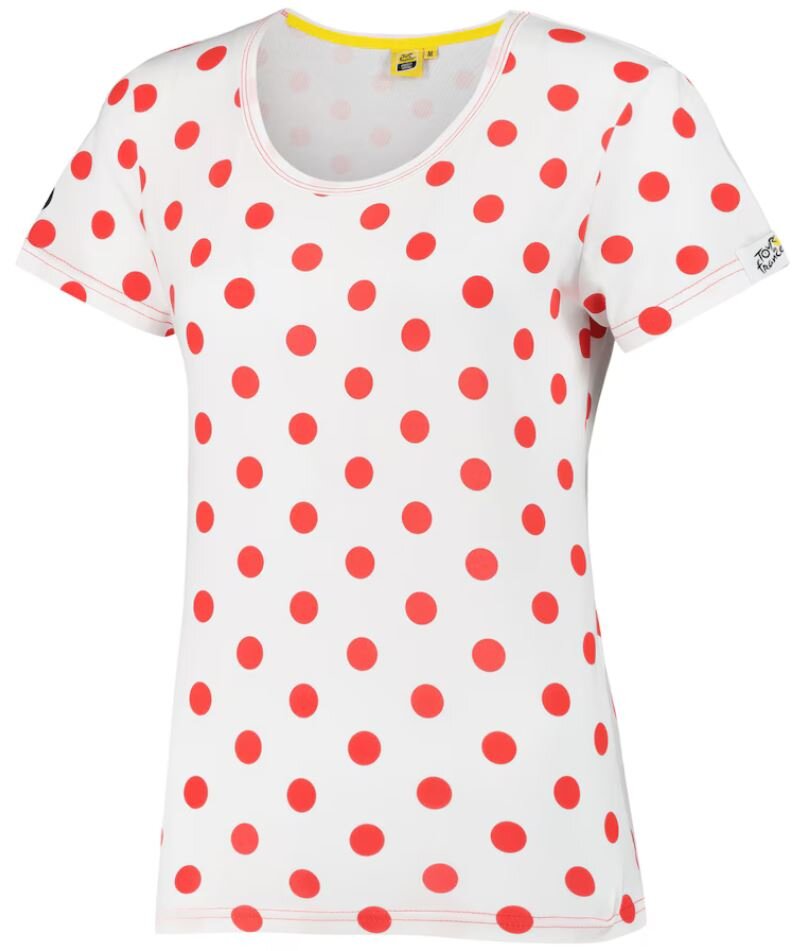 Oficiální produkt - dámské tričko a doplňkové zboží z katalogu výrobků s logem a grafikou etapového cyklistického závodu Tour de France.Zboží je legálně licencováno a prodáváno se souhlasem vlastníků licenčních práv.Bílé dámské tričko s červenými puntíky a logem etapového cyklistického závodu...