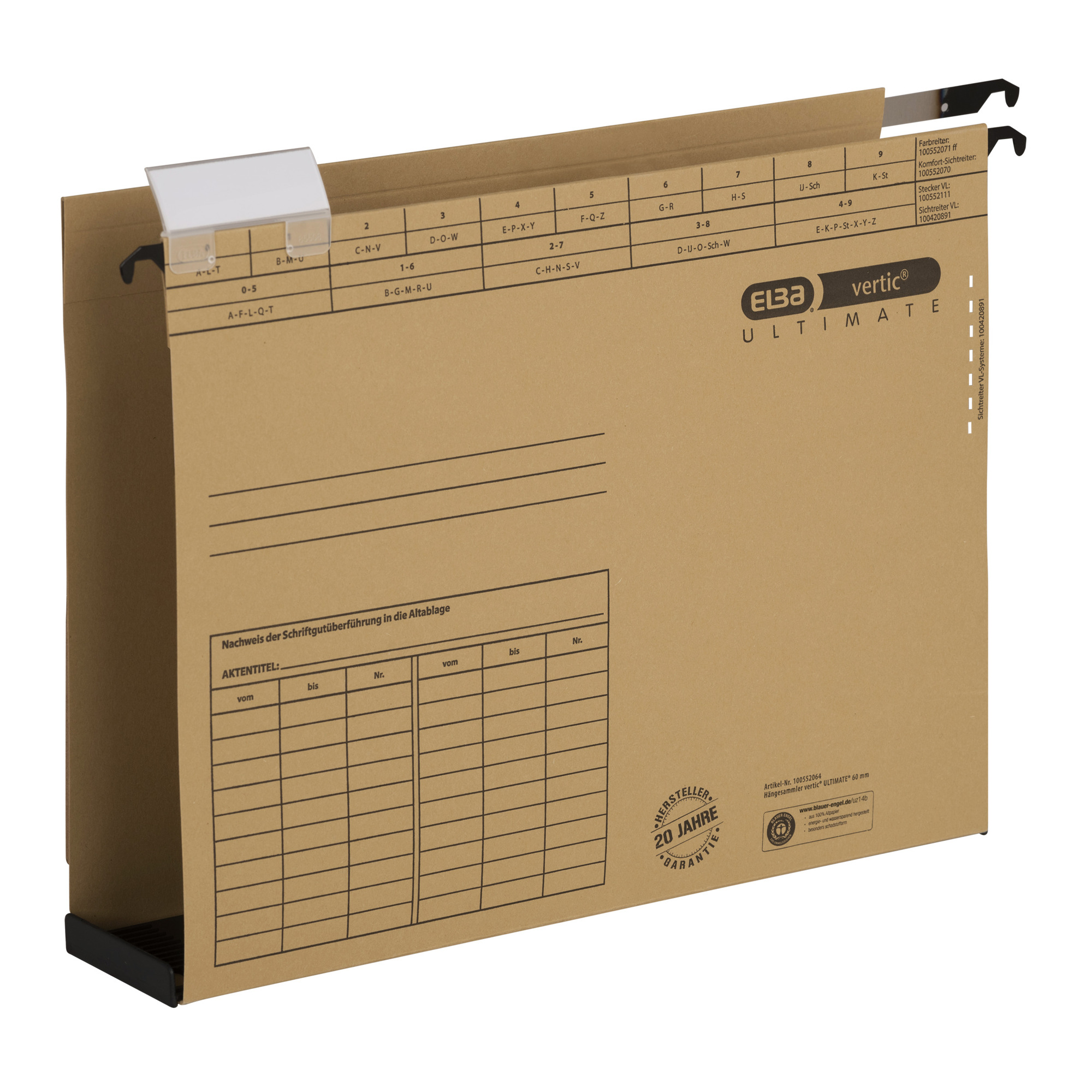 hnědé, otevírání shora,60 milimetrový plastový spodek, s exkluzivním držákem štítků Elba komfort, složka pojme až 530 listů papíru, karton 240 g/m2, certifikát Blue Angel číst celé