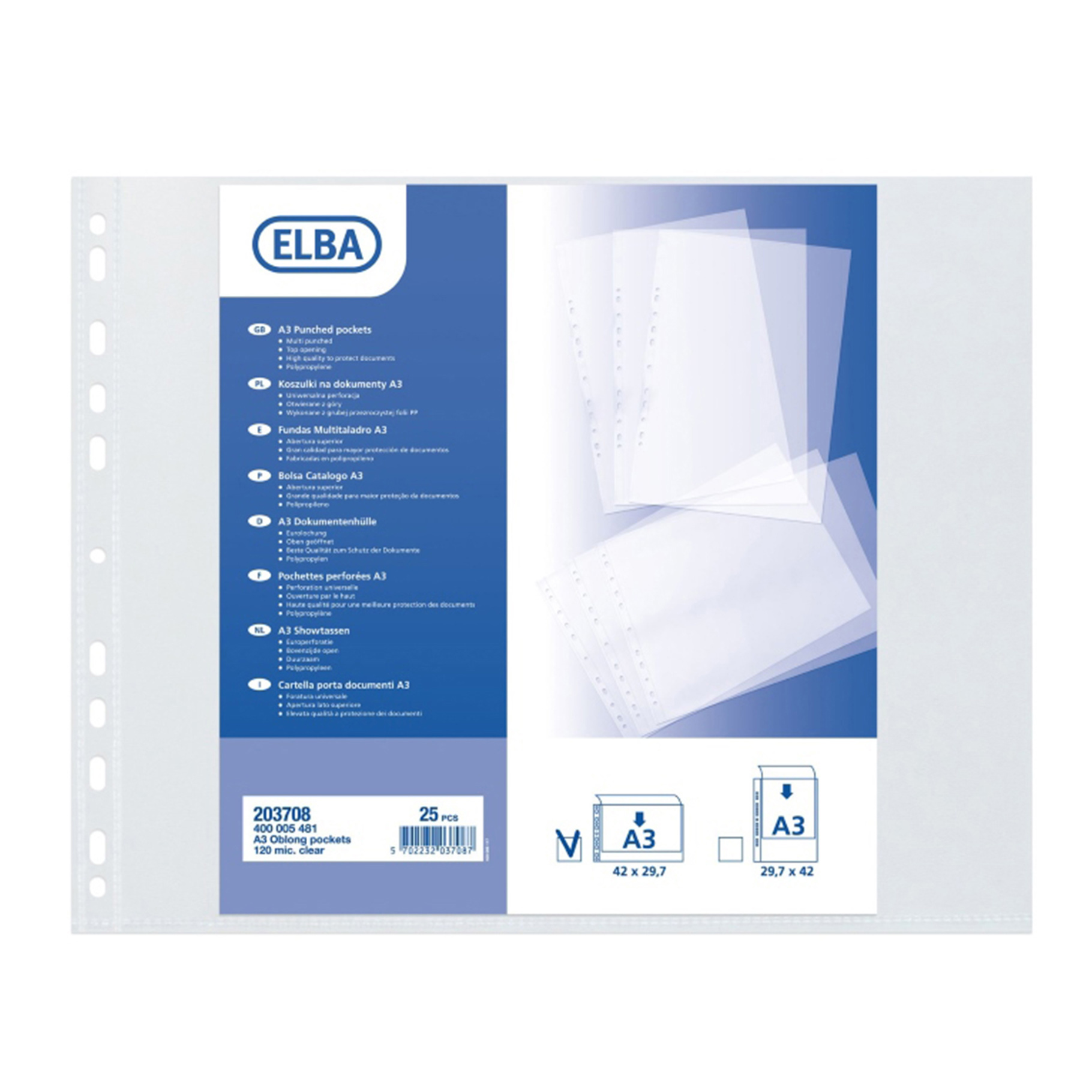 Elba, U-kapsa na šířku, PP, A3, 120 mic, Transparentní, bal. 25 ks