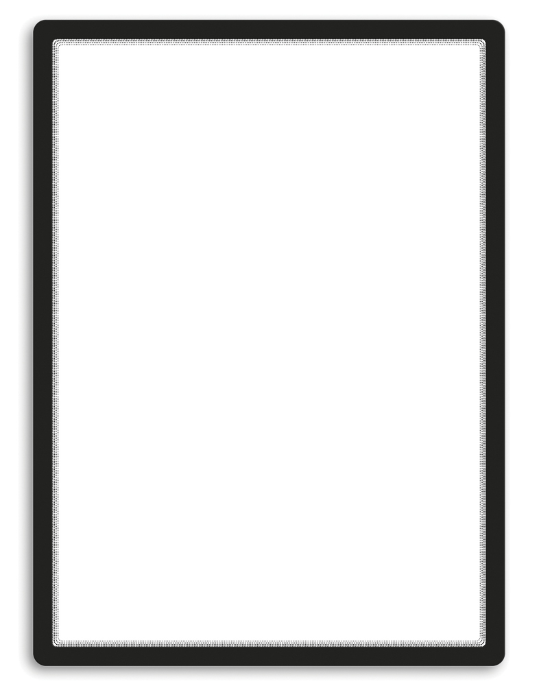 Designový rámeček se zaoblenými rohy. Snadné a rychlé vkládání dokumentů díky širokému otevření rámečku ze tří stran. Prezentace dokumentů na všech hladkých plochách. Fixace dokumentu magnetickými lemy ze všech stran. Přemístění bez zanechání stop lepidla. Vhodné použití v obchodech, hotelech,...