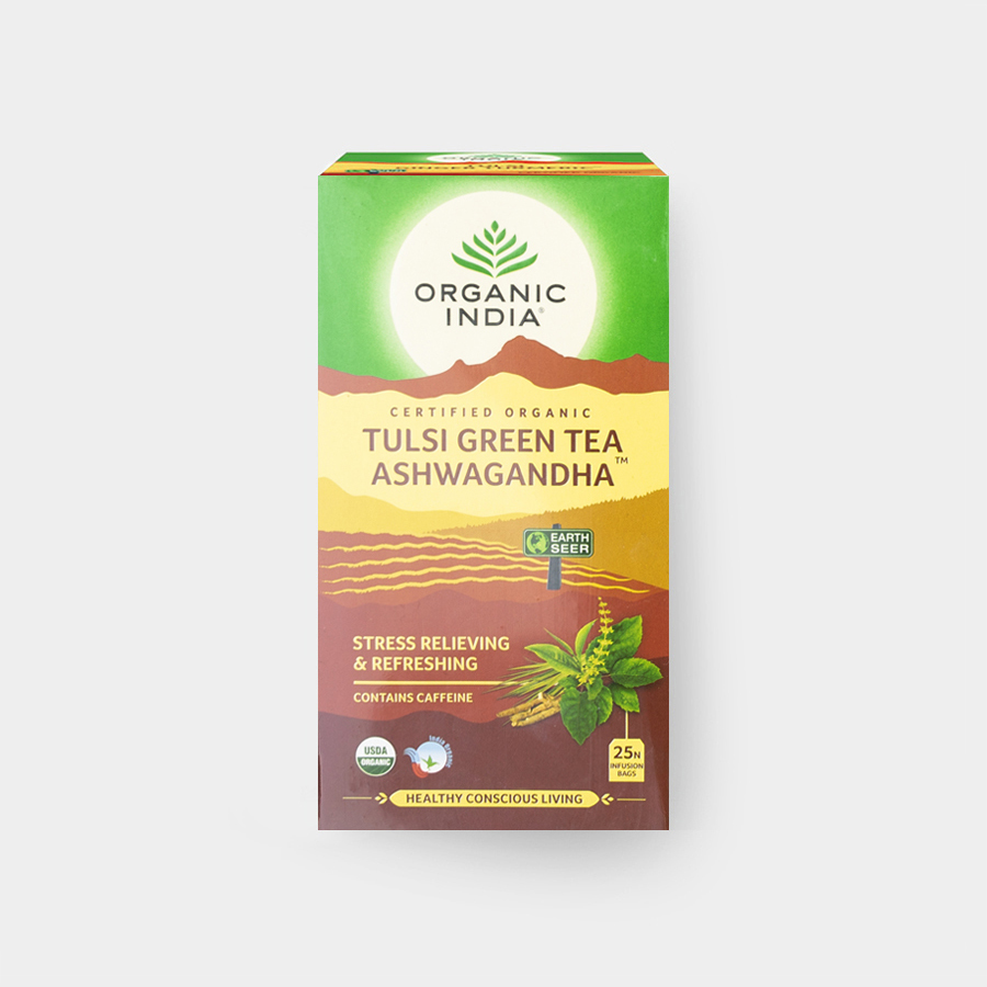 Tento lahodný nápoj kombinuje Bazalku posvátnou (Tulsi), která je v Indii považována za posvátnou rostlinu a po tisíciletí se používá jako přírodní prostředek pro posílení dýchacích cest a imunity. Ašvaganda (Vitánie snodárná), známá také jako indický ženšen, je adaptogen s pozitivním vlivem na duševní pohodu, koncentraci a fyzickou výdrž. Zelený čaj navíc přispívá k podpoře energetické rovnováhy, kardiovaskulárního systému a pomáhá spalovat tuky.