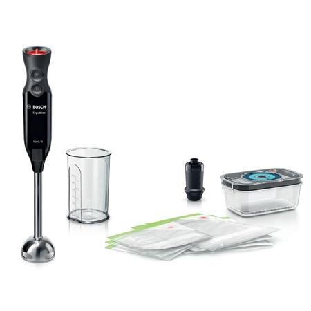 Tyčový mixérVčetně vakuového systému: pomocí vakuovacího nástavce odstraníte vzduch z vakuové nádoby a sáčků, aby vaše potraviny vydržely déle čerstvé.Maximální síla Bosch s 1000W motorem: pro zpracování i těch nejtvrdších ingrediencí a s možností využít nejrůznější příslušenství.Ergonomický tvar...
