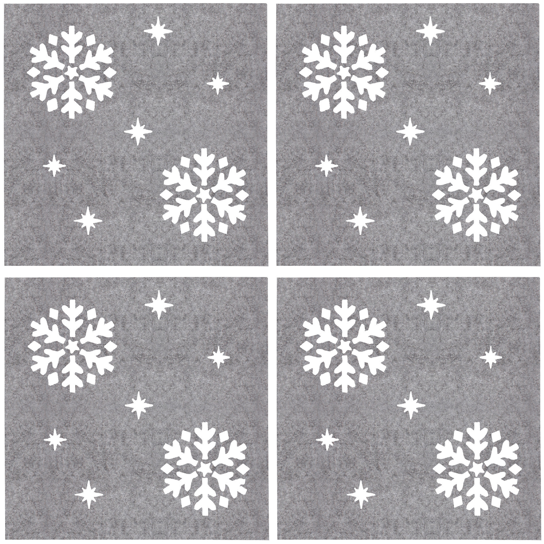 Kvalitní plsťové/filcové podložky - podtácky pod hrníček nebo skleničku v moderním vánočním designu. Podložky jsou nabízeny v setu 4 ks 10x10 cm. Motiv je v podložkách vykrojen. Cena za 4 kusy. číst celé