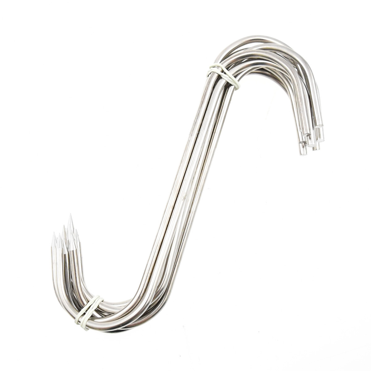 Tyto háky jsou ideální volbou pro každého, kdo pracuje s uzením, porcováním nebo skladováním masa. Díky kvalitní nerezové oceli jsou nejen odolné vůči korozi, ale i snadno čistitelné, což je nezbytné pro udržení hygienických standardů. Každý hák má klasický tvar S s jednou špičkou, který umožňuje pevné a bezpečné zavěšení masa v udírnách, prodejnách masa a uzenin, ale také na jatkách či výrobních linkách.