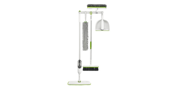 Vynikající pro mokré i suché čištění podlah a stírání prachu z nábytku apod. Souprava zahrnuje mop s rozprašovačem, univerzální teleskopickou tyč, smeták, podlahový rýžák, pružnou prachovku, smetáček s lopatkou a závěsnou lištu ProfiMATE se 4 háčky a úchytkou. Perfektně skladné, celou soupravu...