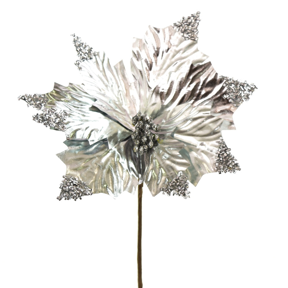 Poinsetie stříbrná Ø30 cm