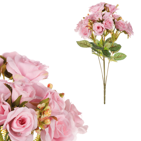 Tato exkluzivní umělá kytice růží růžové barvy je vhodná pro rozmanité příležitosti. Hodí se na výzdobu nejrůznějších oslav, společenských událostí a dalších. Může ale být i sama o sobě pěknou ozdobou u vás doma. Krása této kytice vyzařuje do okolí, a zvolením vhodné vázy ji ještě umocníte. Její...