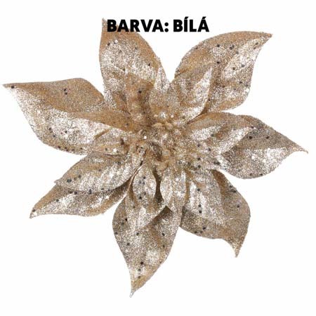 Vánoční růže na klipu, barva bílá s glitry.