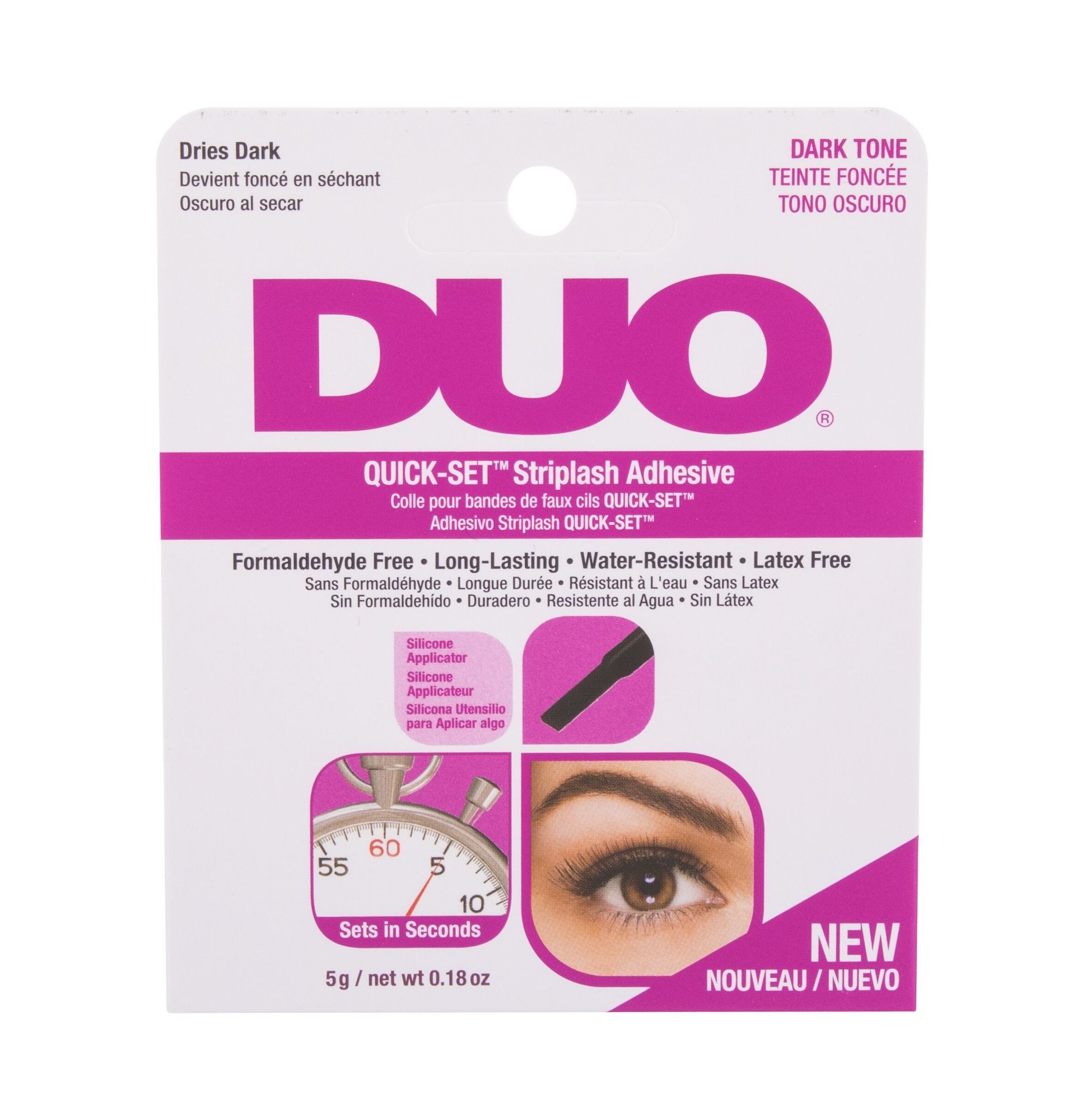 Rychleschnoucí lepidlo Ardell Duo Quick-Set™ Striplash Adhesive přilepí umělé řasy během několika málo vteřin. Lepidlo je doplněné o praktický štěteček, který usnadňuje aplikaci lepidla a zabraňuje jeho nadměrnému použití.Vlastnosti lepidla na řasy Ardell Duo Quick-Set™:rychle zasychá,tmavá...