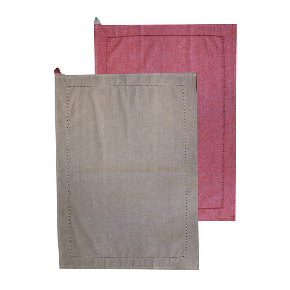 Utěrka z recyklované bavlny, 2 ks, 50 x 70 cm, béžová + červená