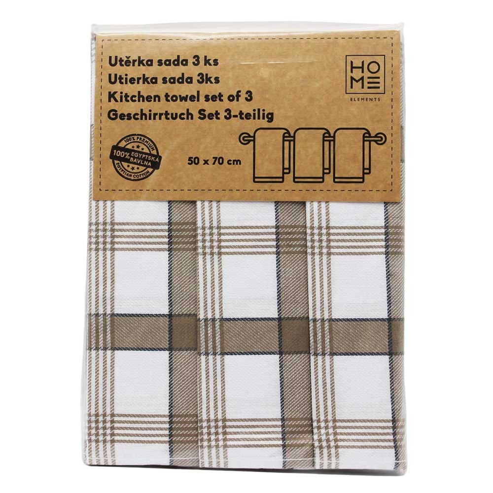HOME ELEMENTS Set utěrek z egyptské bavlny 50*70 cm, 3 ks, Kostky hnědé