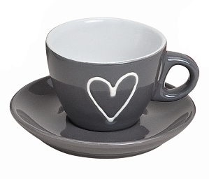 Krásný porcelánový hrnek espresso s podtalířkem a ručním motivem srdce.Výška: 5 cmObjem: cca 65 ml  číst celé