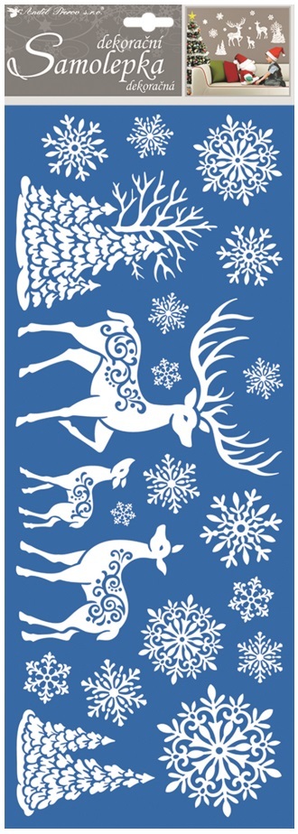 Samolepka bílá s glitry jelen 20 x 56 cm