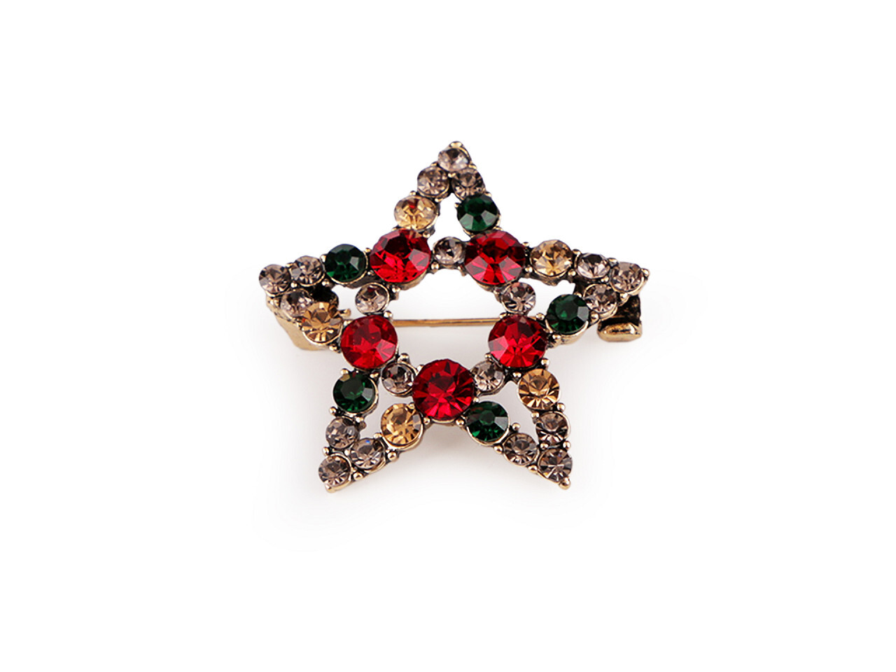 Vánoční brož s broušenými kamínky hvězda - 1 ks - červená zlatá
