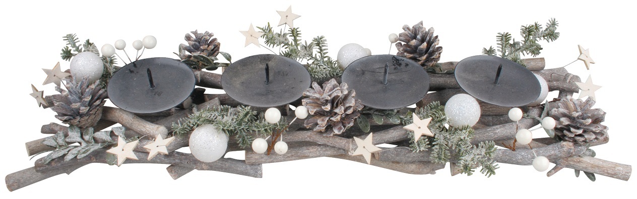 Vytvořte si nezaměnitelnou vánoční atmosféru s tímto elegantním adventním svícnem! Jeho podlouhlý tvar a přírodní design zaručí, že se stane středobodem vašeho interiéru během svátečních dnů.