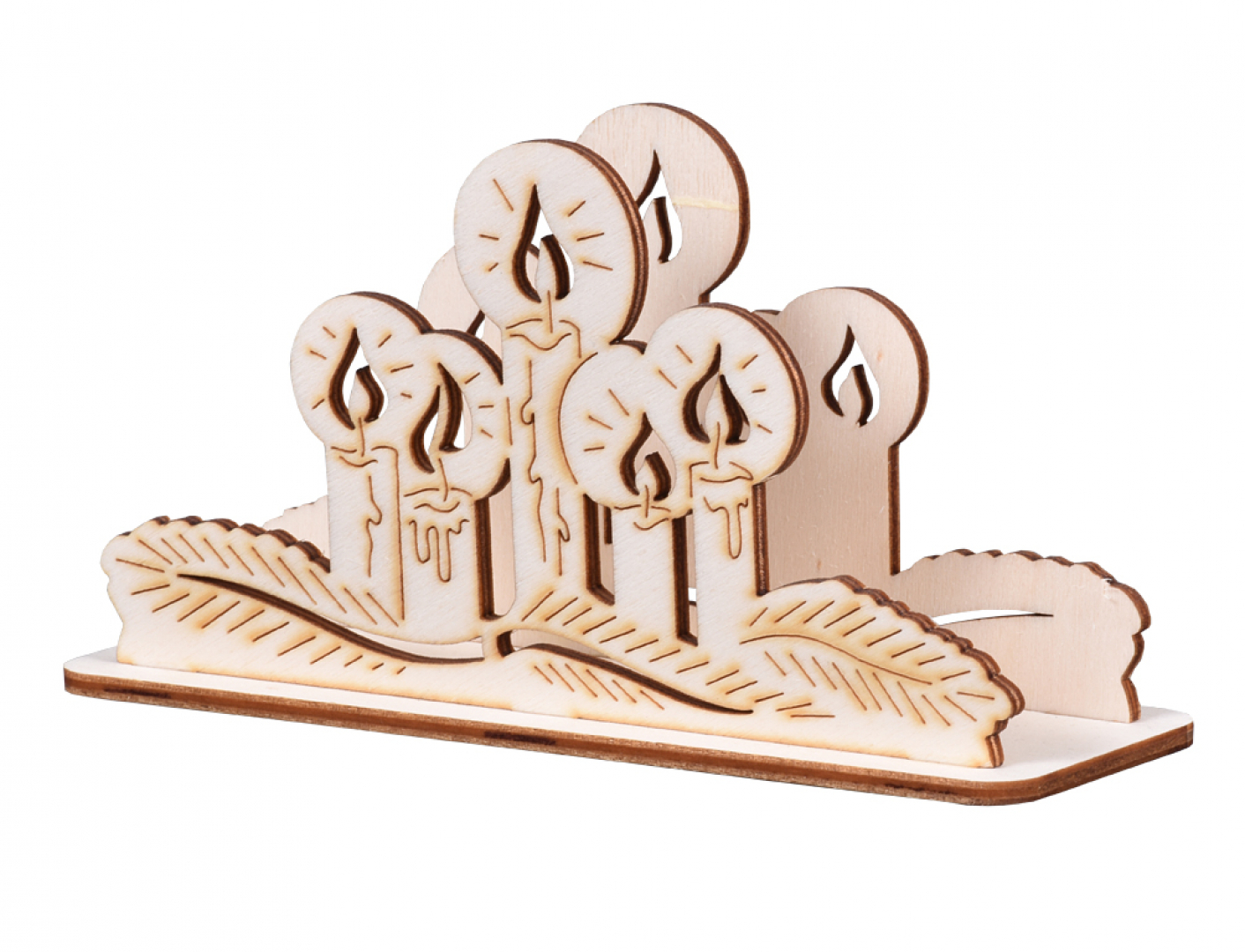 Vánoční dřevěný stojánek na ubrousky s motivem svícnu s 5 svíčkami. Český výrobek. Vánoční stojánek na ubrousky Vám krásně ozdobí např. Vaši vánoční tabuli. Materiál: topolová překližka. Rozměry: šířka: 15 cm, výška: 7 cm. Barva: přírodní. číst celé
