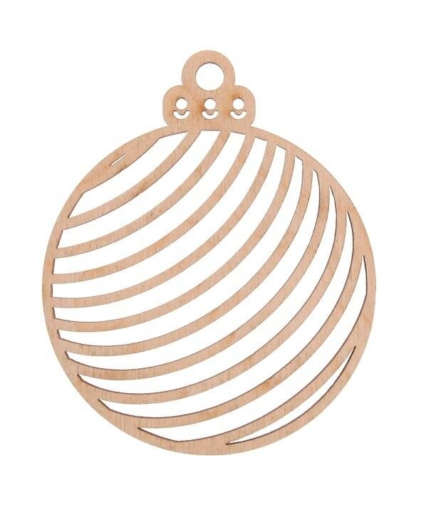 Drewniana bombka w paski naturalna. Średnica 8cm, wysokość całkowita 10cm. W opakowaniu 3szt číst celé