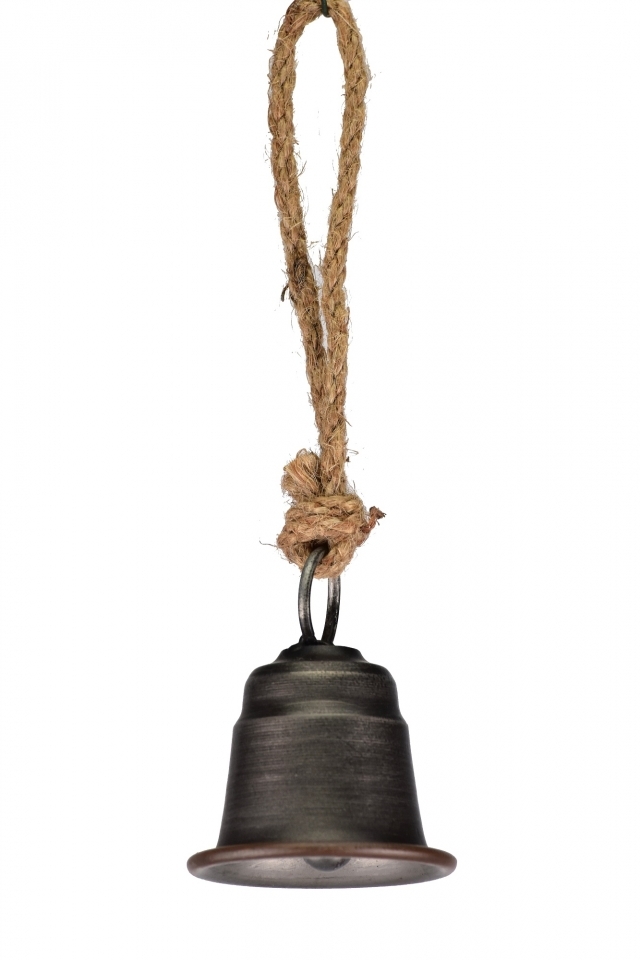 Kovový zvonek šedý na jutovém provaze 7x5,8x25 cm
