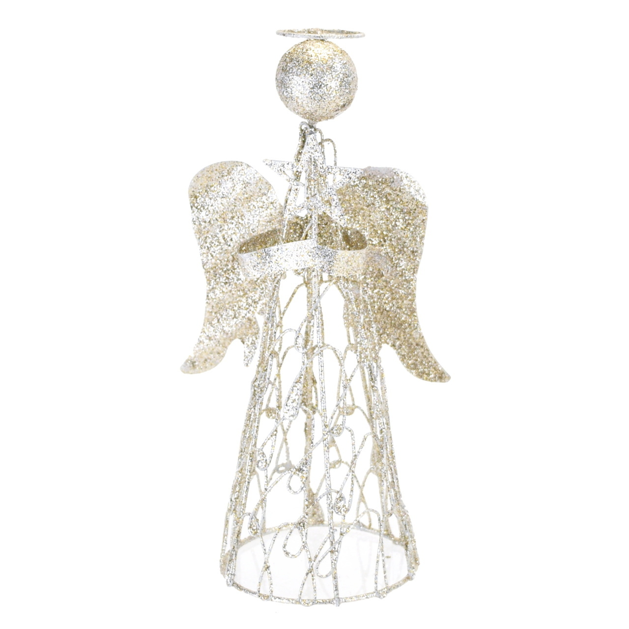Anděl šampaň 20 cm - drátěný andílekVýška: 20 cmMateriál: DrátBarva: ŠampaňDekorace: Gliter číst celé
