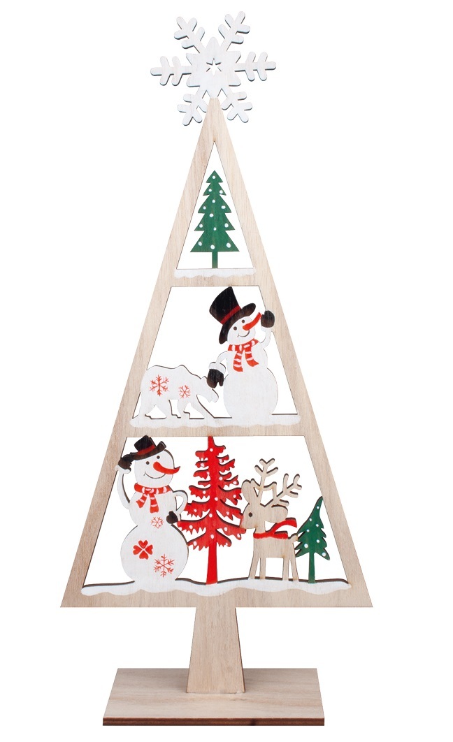 Strom s dekoracemi dřevěný na postavení 16 x 34 x 6 cm, barevný