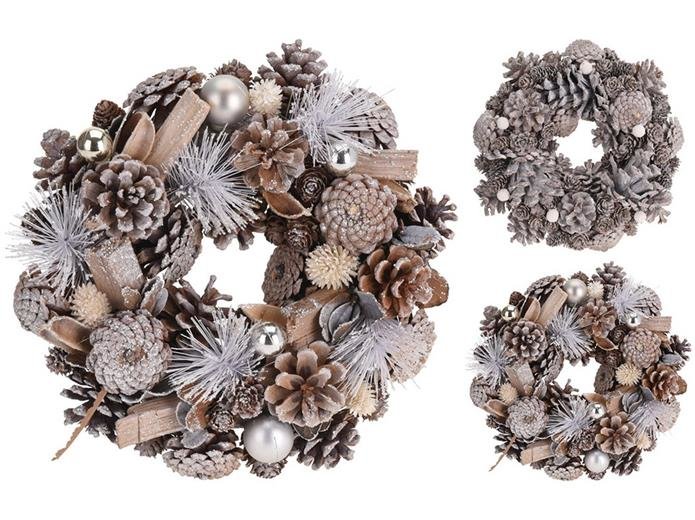 Vánoční dekorace věnec, 24 cm přírodní, mix barev