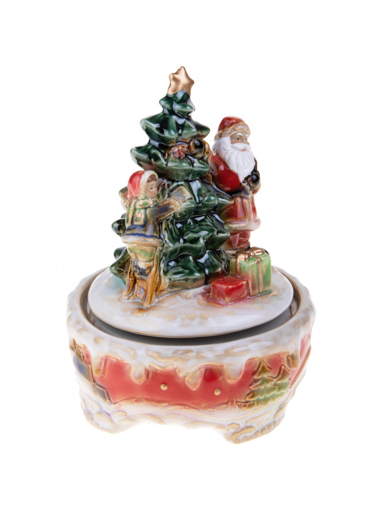 Porcelánová hrací skříňka Santa a dítě u stromu 14,5x20cm VÁNOCE BRANDANI
