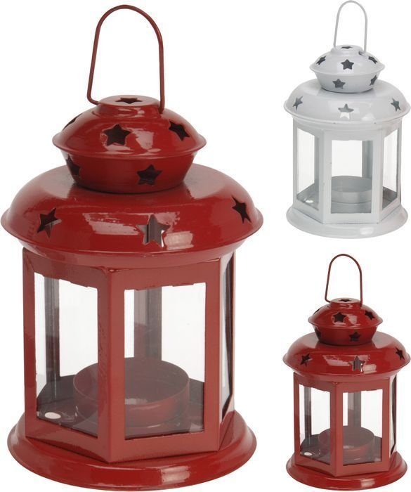 lucerna 8x11,5cm, bílá/červená, na čaj.svíčku, kov