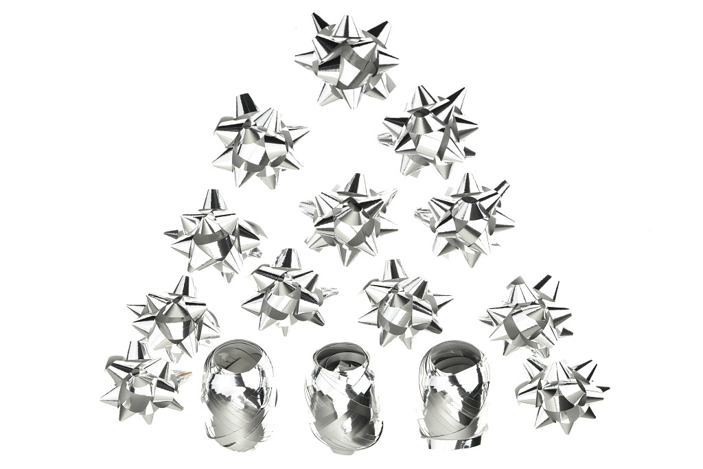 Dárkové mašle a stuhy HS (5cm) 15ks - Stříbrné