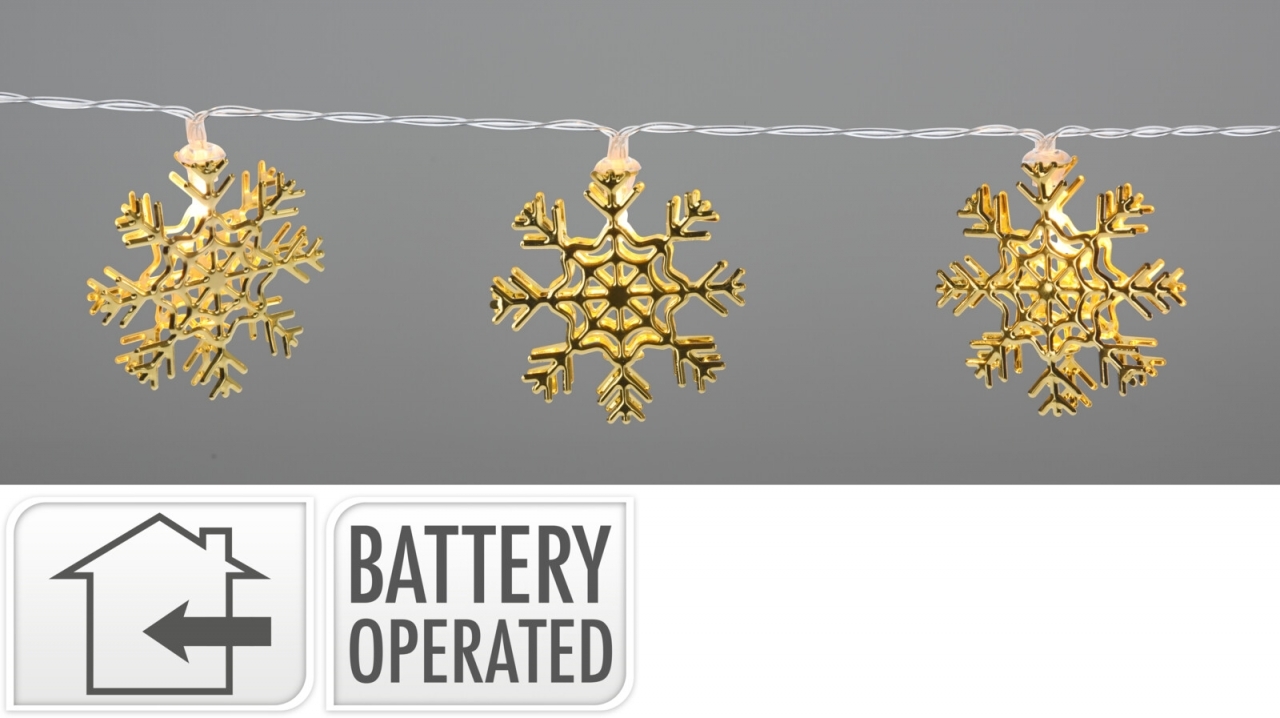 Vánoční osvětlení 10x LED zlaté vločky, délka 120 cm