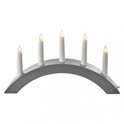 Svícen na 5× žárovičku E10 dřevěný šedý, oblouk, 40×28cm, v.