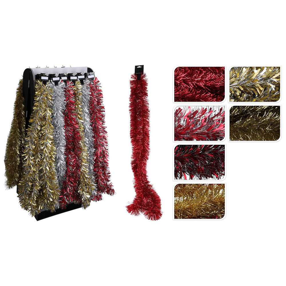 Vánoční girlanda v 6-ti barvách.průměr / délka: 10 cm / 2 mbarvy: stříbrná, zlatá, červená, zlato-stříbrná, zlato-červená, červeno-stříbrnáhmotnost: 38gmateriál: polyvinylbarevnou variantu vyberte v poli nad cenovkouCena je za 1 kus. číst celé