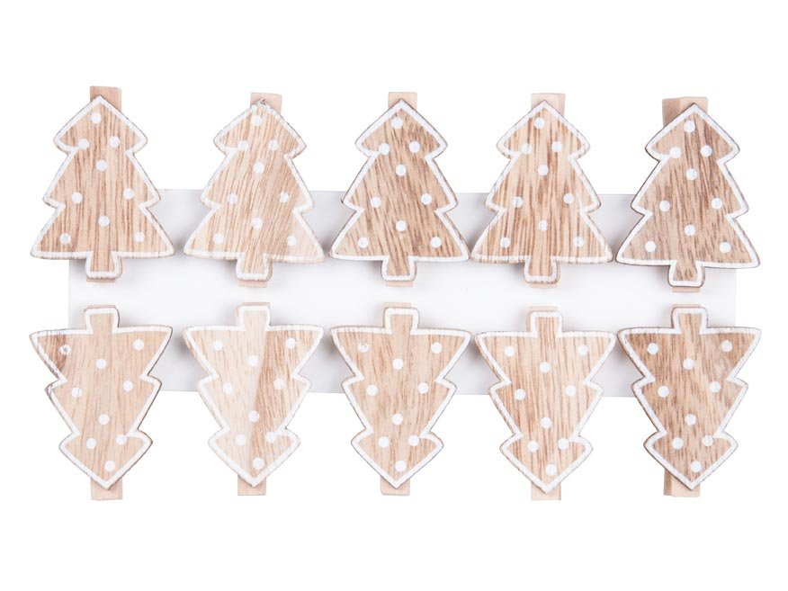 Vánoční, dřevěná dekorace kolíček se stromečkem, ozdobí váš vánoční dárek, přáníčka nebo je můžete kamkoliv jinam připnout a ozdobit tak váš interiér. Vyrobeno z překližky.BALENÍ OBSAHUJE: - 10 ks kolíčků (stromeček)Uvedená cena je za 1 balení. číst celé