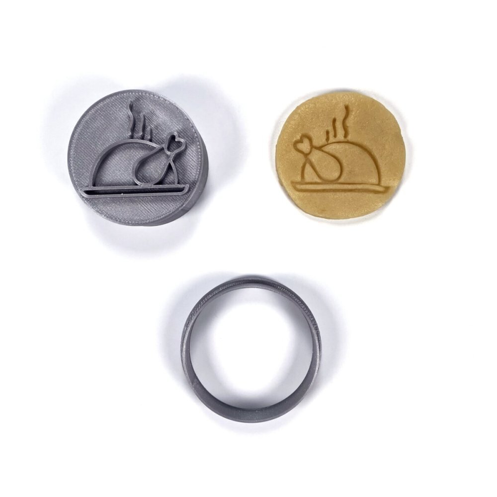Netradiční razítko upečeného krocana zhotovujeme na 3D tiskárně při použití materiálu PLA plast (materiál biologicky odbouratelný), odolný do 50°C, nevhodný do myčky na nádobí. Razítko se skládá z kroužku, jenž vykrojí hmotu a samotného razítka pro otisknutí obrázku. Vhodné pro práci s širokou...