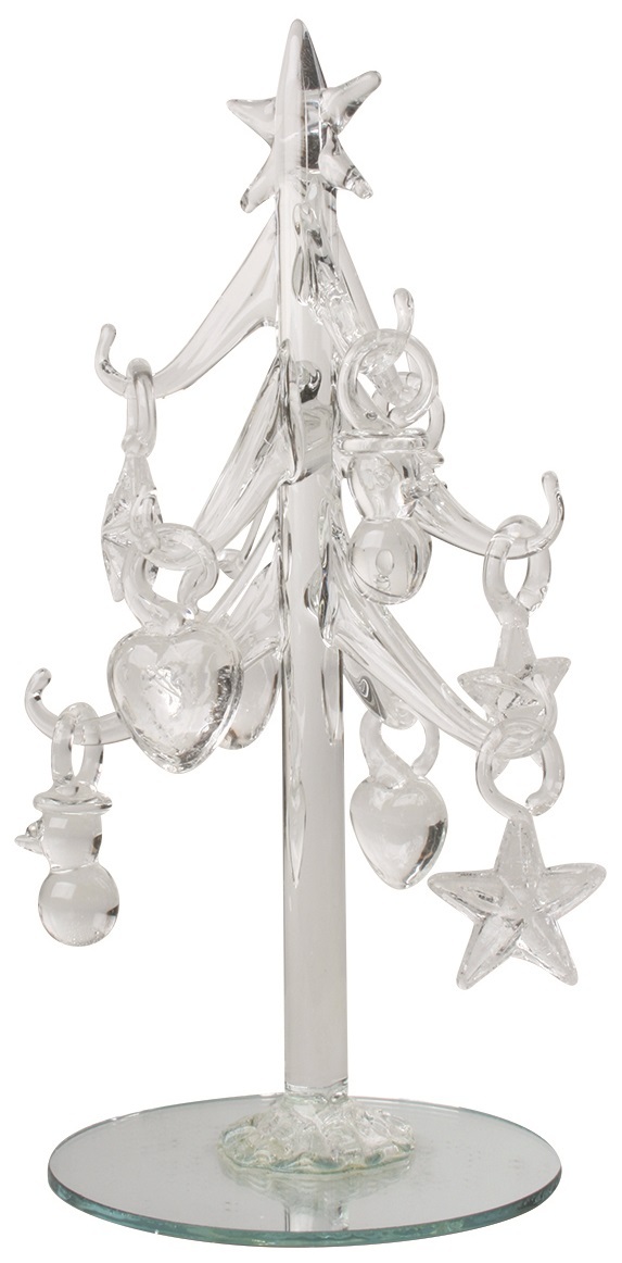 Stromek skleněný s čirými ozdobami 16cm