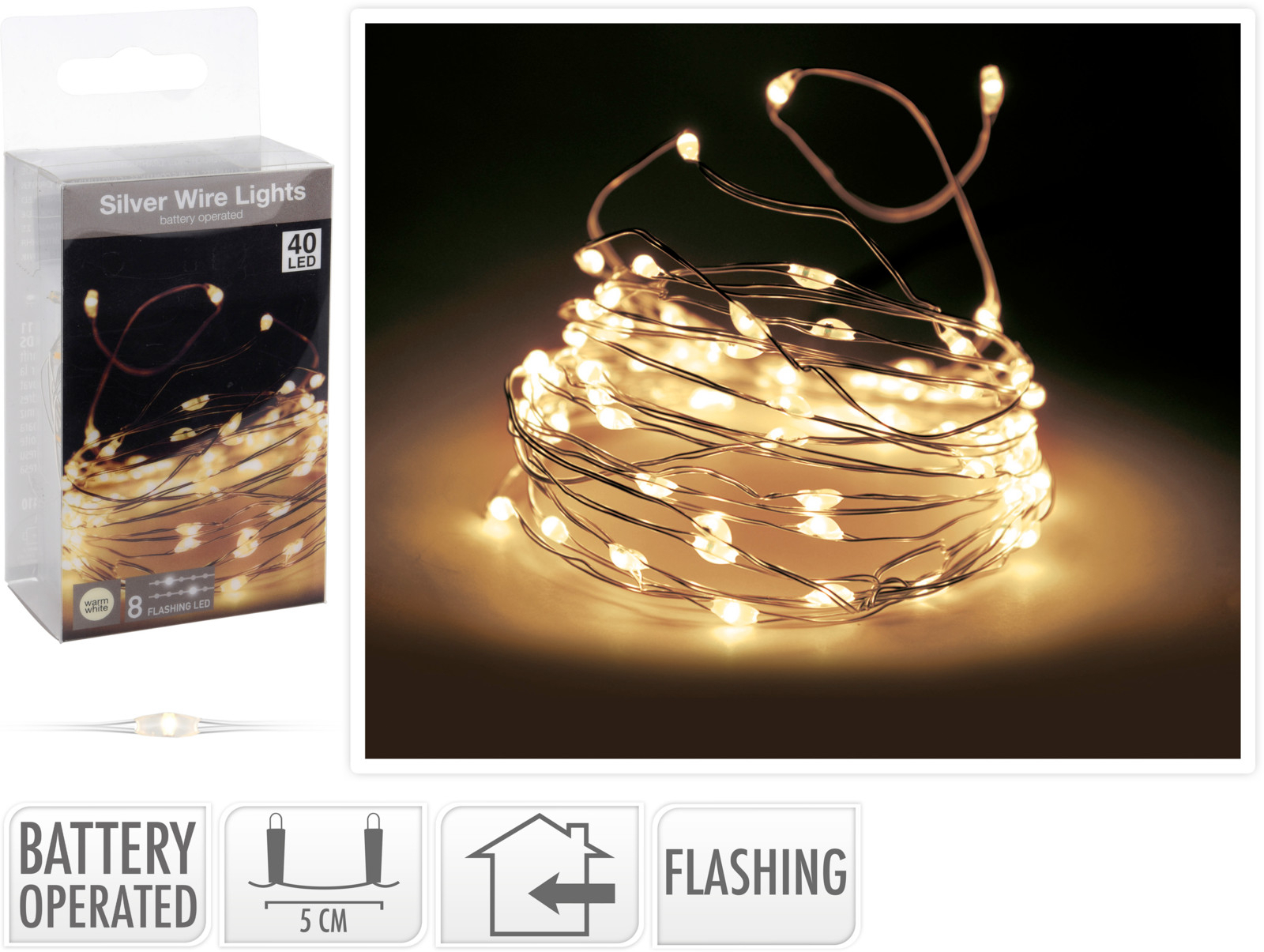 ŁAŃCUCH LED 40L DO WEWNĄTRZ FLASCH NA BATERIE